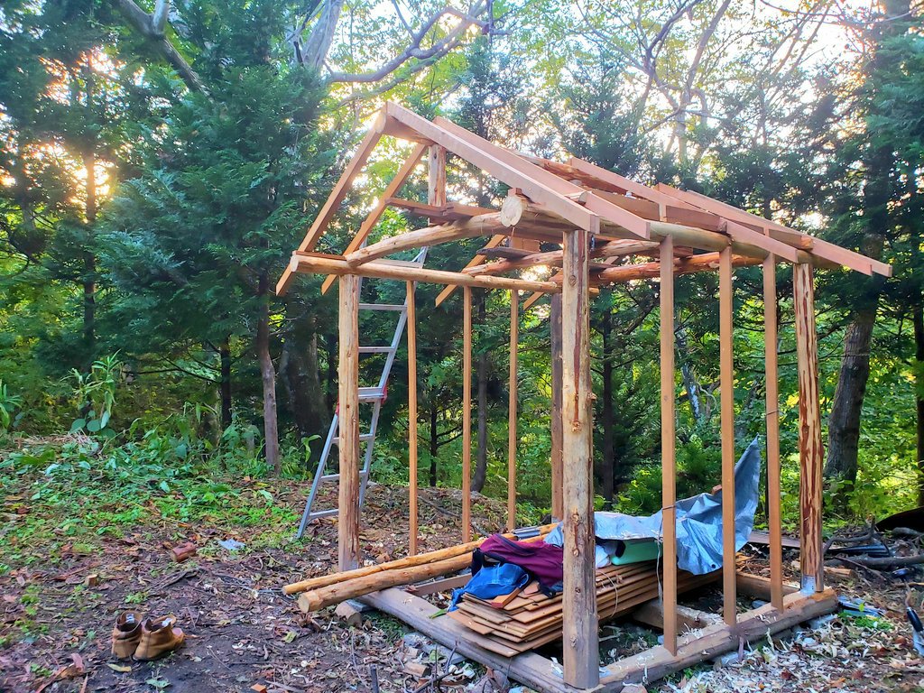 垂木が細いから 残りの箇所は 2本合わせて倍の太さにする