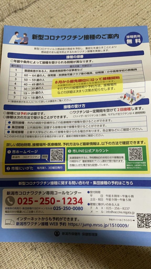 ワクチンのハガキきたみたいだから