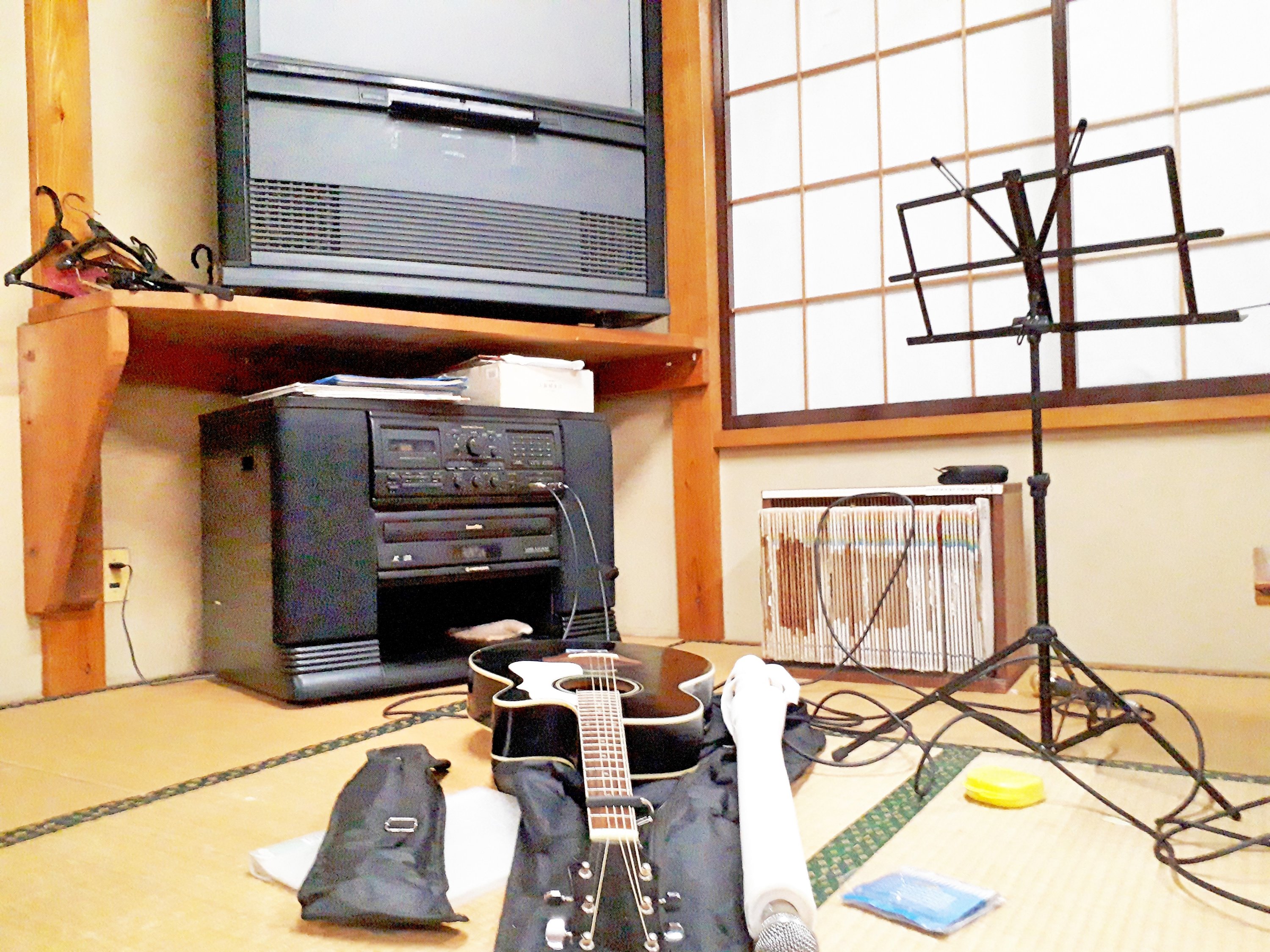 祖母の趣味のカラオケにギター繋いで歌ってた(*´○`)o¶♪