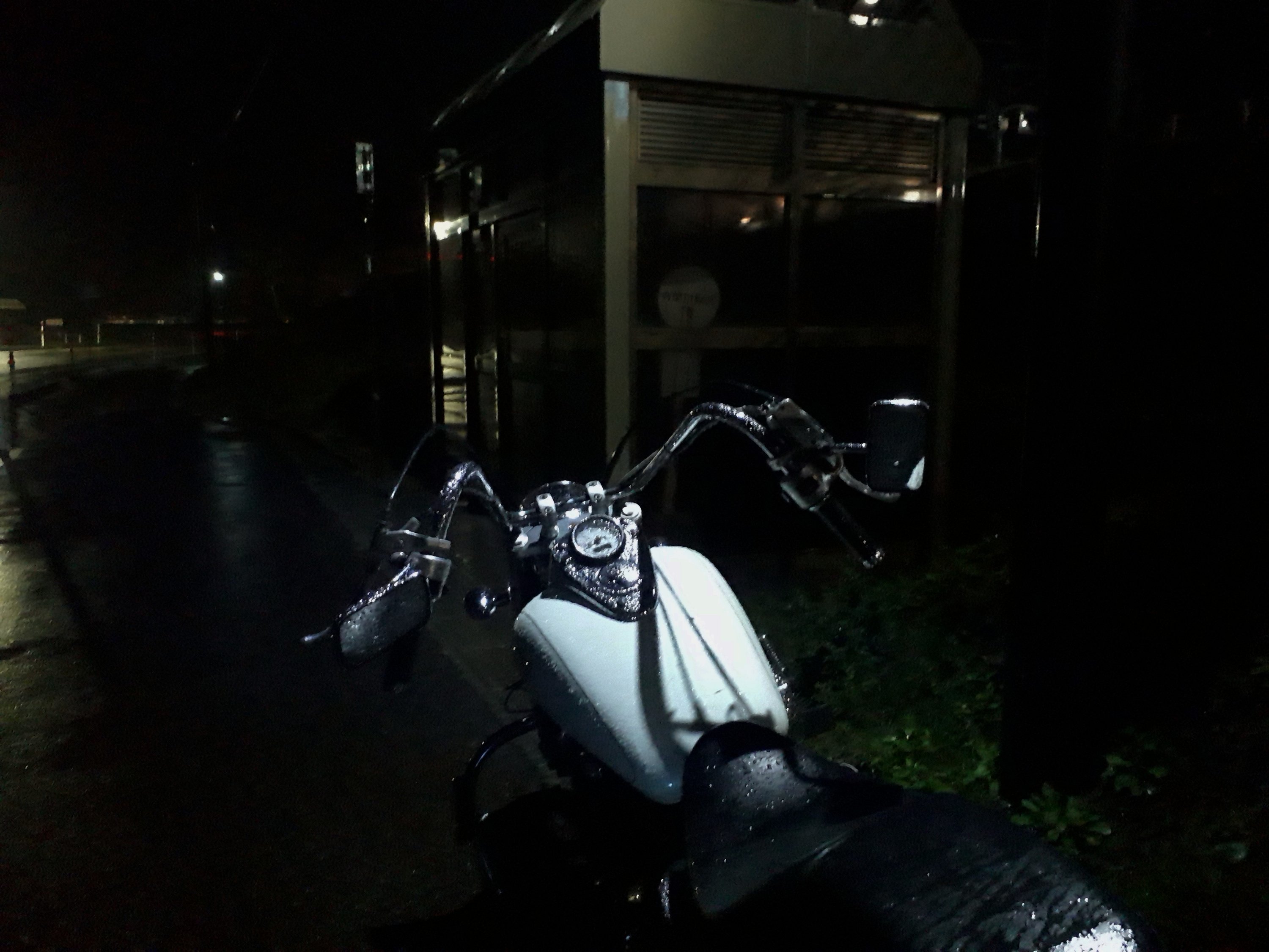 雨の中バイクで立ち往生してる