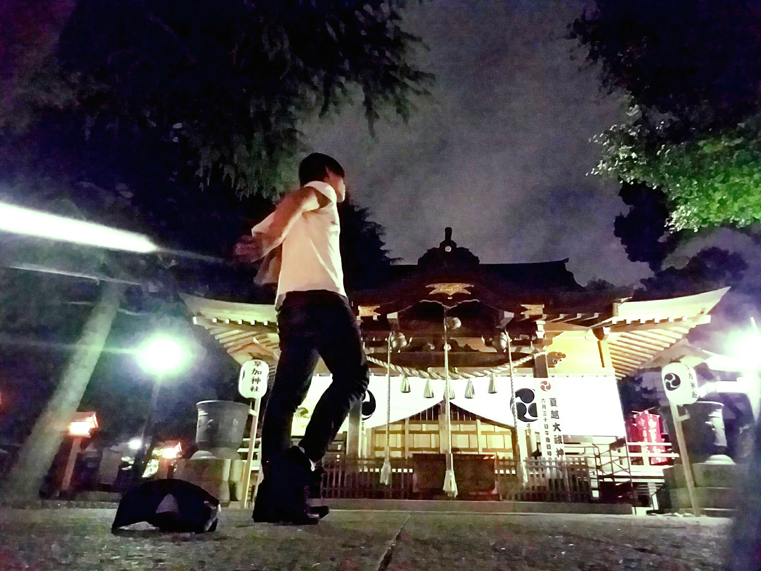 草加神社を深夜にお参り٩(•ᴗ• ٩)
